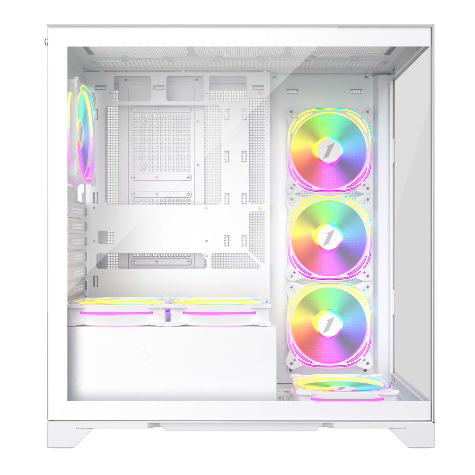 Panoramic View with Bezel-Less Design.The Mi8 features a bezel-less design with a 2.5 sided surround view. The multi-angled panoramic view design allows you to show off your setup in all it's glory.Great Airflow.The top and side panel mesh design allow for great cooling of your cases along with the pre-installed 7 ARGB fans.Snap fit case design.Quick release panels makes light work of building in this case.