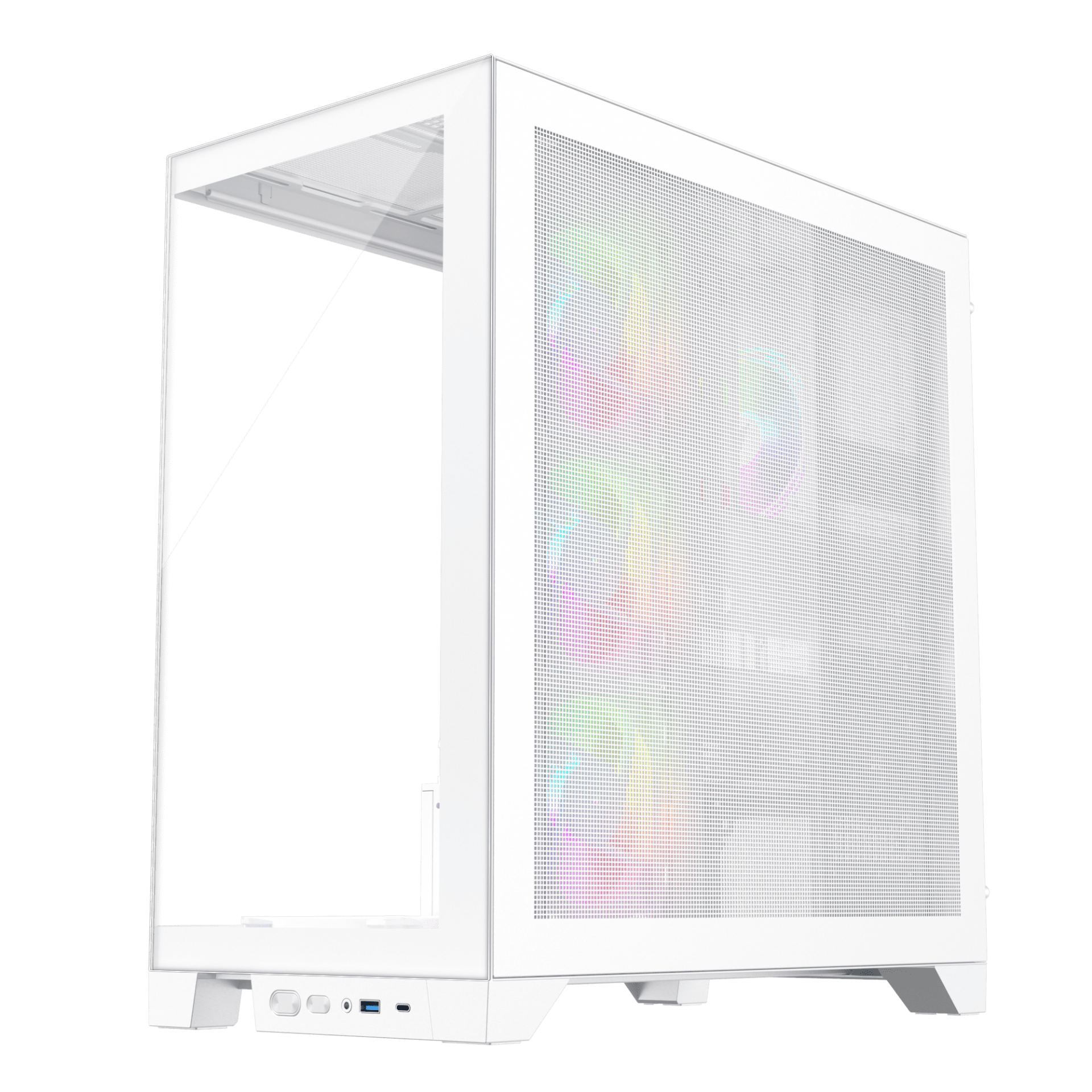 Panoramic View with Bezel-Less Design.The Mi8 features a bezel-less design with a 2.5 sided surround view. The multi-angled panoramic view design allows you to show off your setup in all it's glory.Great Airflow.The top and side panel mesh design allow for great cooling of your cases along with the pre-installed 7 ARGB fans.Snap fit case design.Quick release panels makes light work of building in this case.