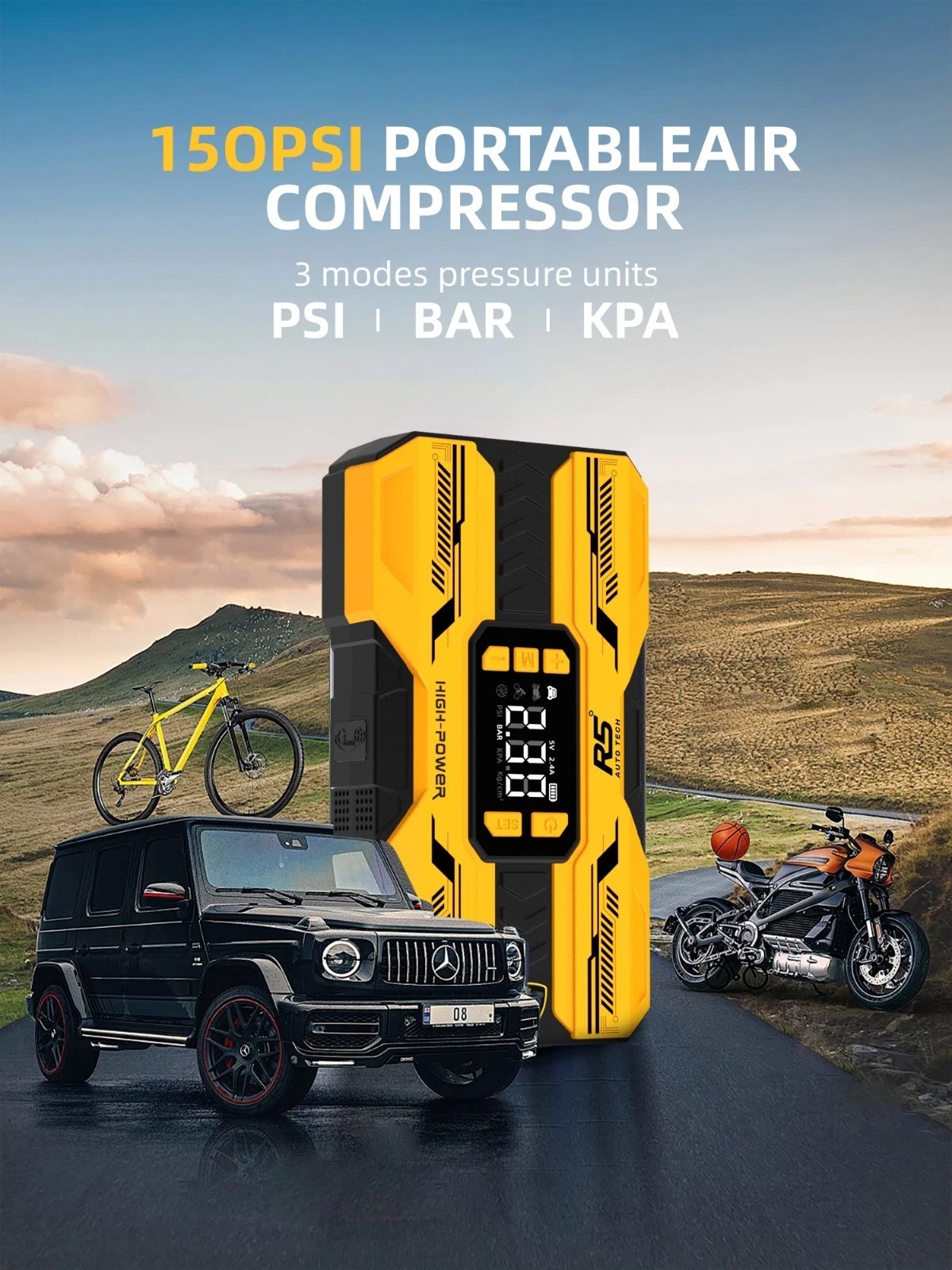 Car Jump Starter 8000mAh, 800A Peak | 4-in-1 Portable Air Compressor & Power Bank Yellow