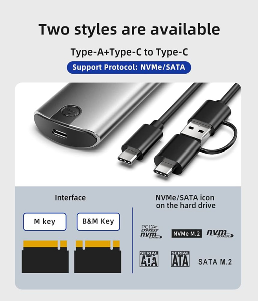 Netac NVMe M.2 PCIe to SATA SSD Caddy USB 3.1 M.2 SATA & M.2 NVMe Dual Protocol Solid State Drive Enclosure
