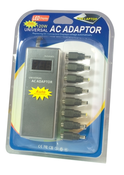 Universal Notebook power supply with a maximum output of 120 Watt.Suitable for most models using a standard round DC power plug.Can also be used for a wide range of other equipment that requires a voltage between 15 and 24 Volts DC.